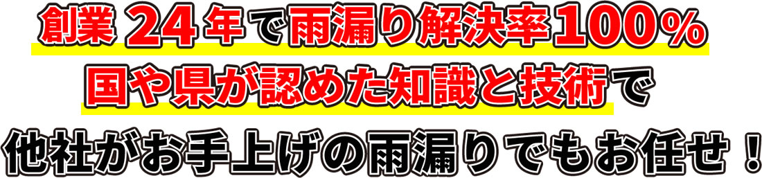 「他社が止めれない雨漏りでも根本からピタっと止める」をモットーに、創業24年、修理実績は9000件を突破し、お客様から信頼と実積を得る。